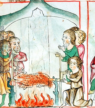 from The Tacuinum Sanitas , Late 14th century. Notice the dog