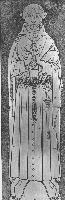 Effigy of a Merchant at Parish Church of St. Peter and Paul, Northleach, Gloucesterchire. Late 14th century. Note the elaborate belt and the shoulder buttoning cloak. Sleeves extend well onto hands. |