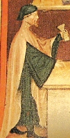 Italian Merchant as painted by Giotto in Death of the Knight of Celano Upper Basilica of San Fancesco, Assisi. Early 14th century. Note matching hat and gown. |