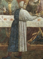 A Servant serving at table from Supper in the House of the Pharisee by Giotto, Early 14th century Note the seams on the coif and the decoration off the collar. Realistically depicted garment. . |