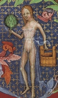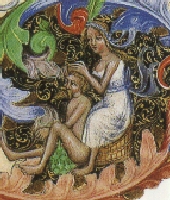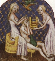A bathing woman in underwear. Bohemian, late 14th or early 15th century From Codices vindobonenses 2759-2764 in the Osterreichischen Nationalbibliothek, in Vienna, Austria. |